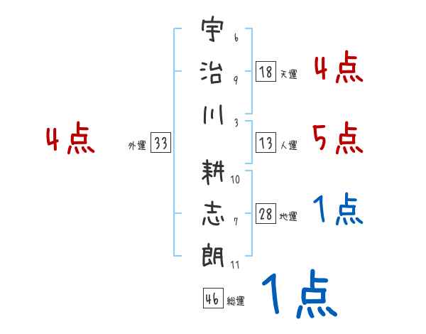 宇治川耕志朗さんの画数の鑑定結果