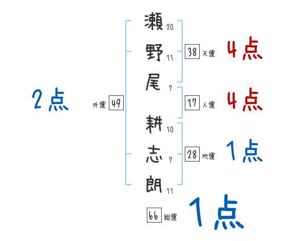 瀬野尾耕志朗さんの外運は49画の2つ星