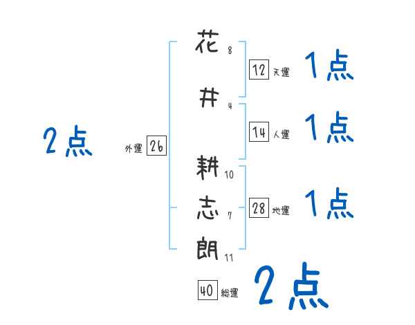 地運![]() | 花井耕志朗さんの地運は28画の1つ星!家庭環境に注意。スポーツで活躍できる能力があるかも。 個性を表す基礎的な運勢です。性格形成や対人関係、行動力など家庭環境に影響されます。主に誕生してから20歳くらいまでの若年期の運勢を表します。 |