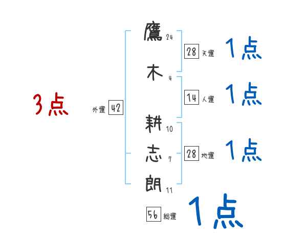 鷹木耕志朗さんの画数の鑑定結果