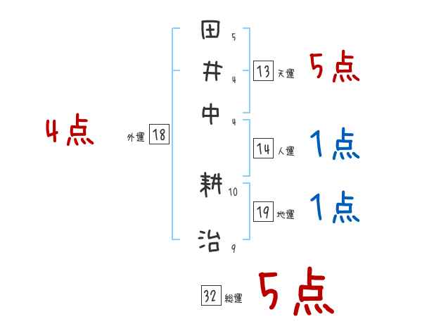 総運![]() | 田井中耕治さんの総運は32画の5つ星!柔軟性があり成功する。チャンスが多く金運が良い。 あなたの人生を表す1番重要な運勢です。生涯を通じて影響する総合運となり、主に50歳以降の晩年期に影響を及ぼします。 |