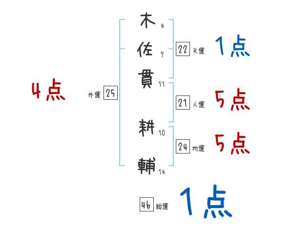 人運![]() | 木佐貫耕輔さんの人運は21画の5つ星!統率力がある。独立し成功する。名誉を手に入れる。 性格や才能などを表す2番目に重要な運勢です。人間関係や協調性、社会的な成功に影響します。主に20歳から50歳ぐらいまでの中年期の運勢を表します。 |