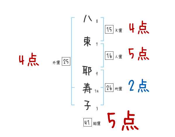 八束耶寿子さんの画数の鑑定結果