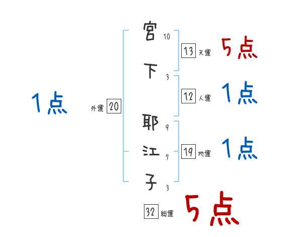 宮下耶江子さんの画数の鑑定結果
