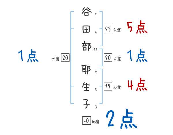 総運![]() | 谷田部耶生子さんの総運は40画の2つ星!自信過剰で物事に固執するためトラブルに注意。 あなたの人生を表す1番重要な運勢です。生涯を通じて影響する総合運となり、主に50歳以降の晩年期に影響を及ぼします。 |