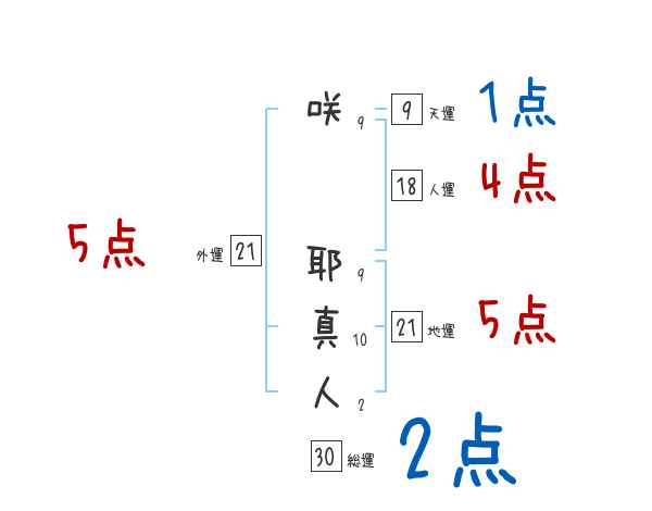 咲耶真人さんの画数の鑑定結果