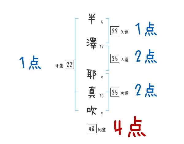 半澤耶真吹さんの画数の鑑定結果