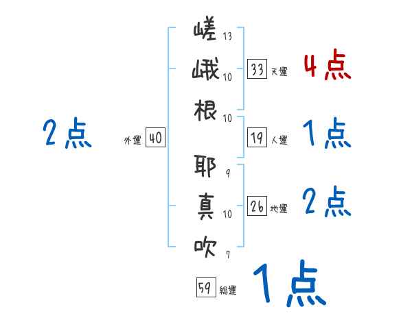 嵯峨根耶真吹さんの画数の鑑定結果