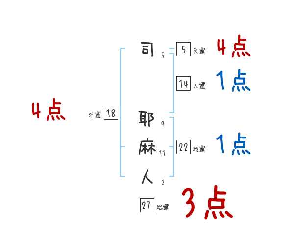 司耶麻人さんの画数の鑑定結果