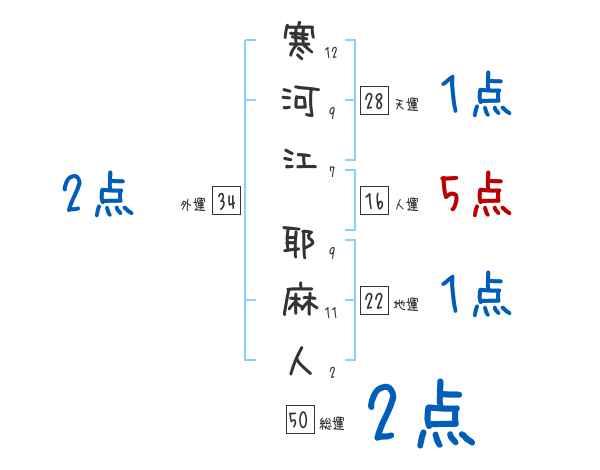 外運![]() | 寒河江耶麻人さんの外運は34画の2つ星!独創性に優れるが、自尊心が強く災難に注意しましょう。 生活面を象徴する運勢です。外部から受ける影響力を表し、結婚運、家庭運や職場、環境への順応性を表します。 |