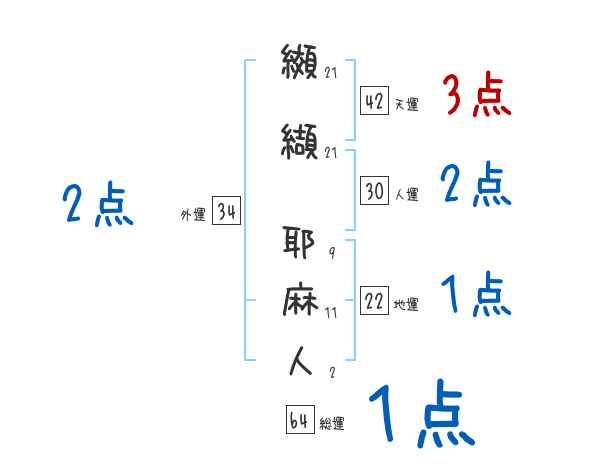 纐纈耶麻人さんの画数の鑑定結果