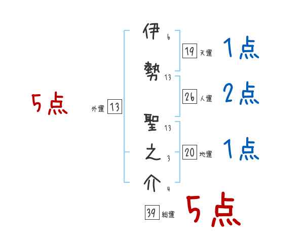 伊勢聖之介さんの画数の鑑定結果
