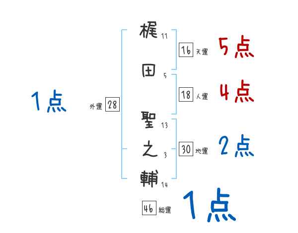 梶田聖之輔さんの画数の鑑定結果