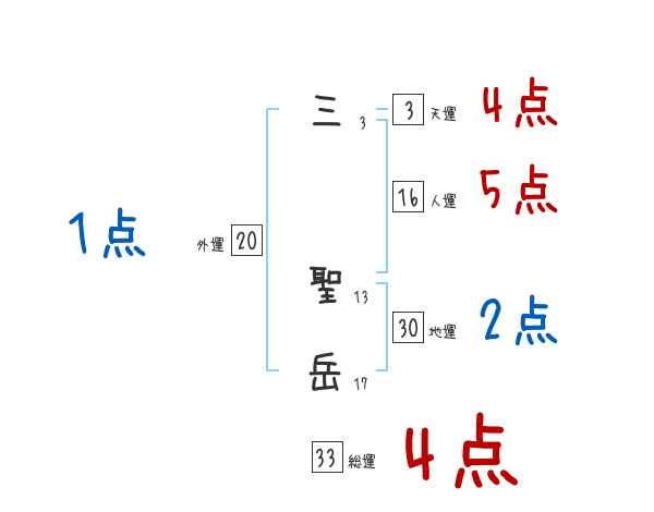 天運![]() | 三聖岳さんの天運は3画の4つ星!活動的で才能に恵まれ、多くの信頼を得る。希望に満ち成長する。 家系が持つ宿命的な運勢を表します。祖先から受け継いだ苗字ですので自分の力が及びません。家柄を象徴します。 |