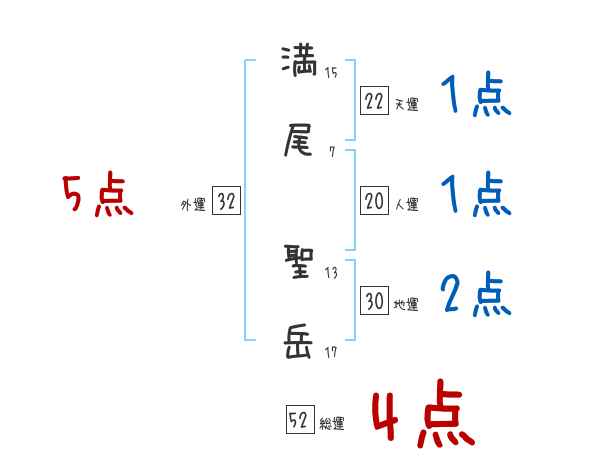 満尾聖岳さんの画数の鑑定結果