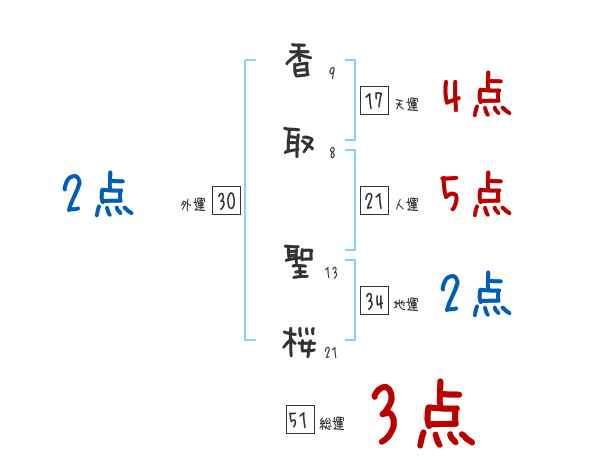 香取聖桜さんの画数の鑑定結果
