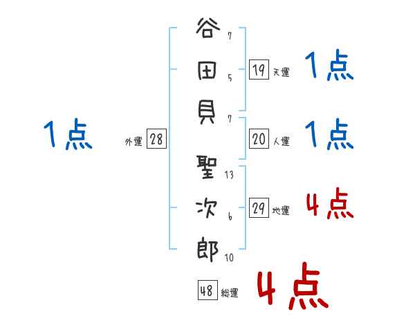 外運![]() | 谷田貝聖次郎さんの外運は28画の1つ星!家庭環境に注意。スポーツで活躍できる能力があるかも。 生活面を象徴する運勢です。外部から受ける影響力を表し、結婚運、家庭運や職場、環境への順応性を表します。 |