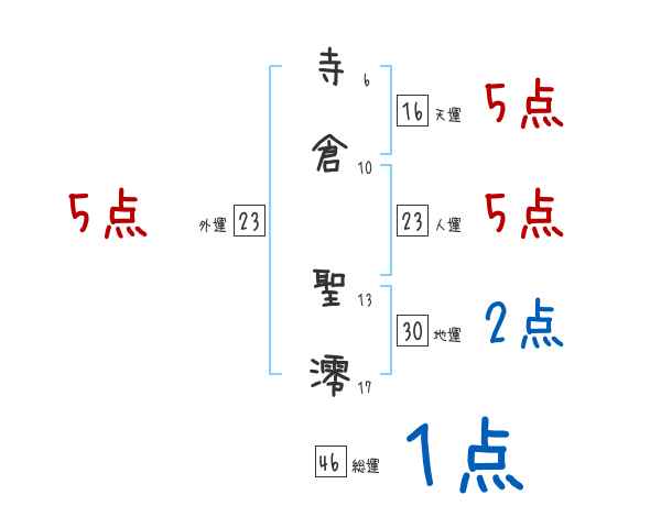 寺倉聖澪さんの画数の鑑定結果