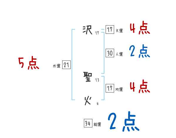 沢聖火さんの画数の鑑定結果