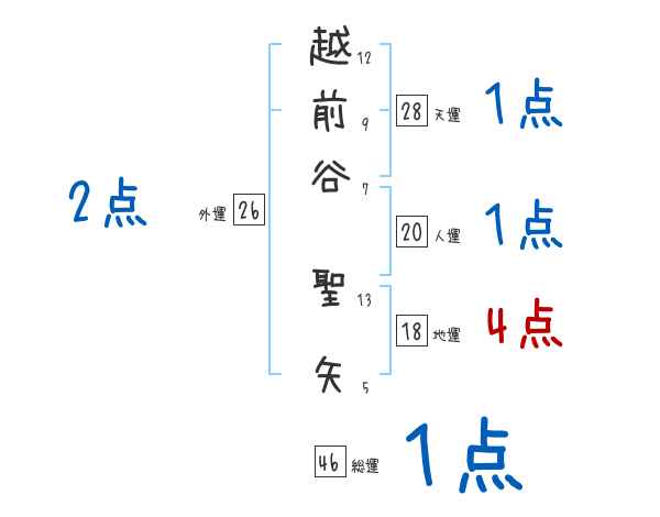 外運![]() | 越前谷聖矢さんの外運は26画の2つ星!波瀾万丈かも。信頼できる人を大事にしましょう。 生活面を象徴する運勢です。外部から受ける影響力を表し、結婚運、家庭運や職場、環境への順応性を表します。 |