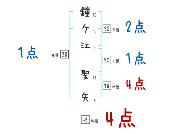 鐘ケ江聖矢さんの画数の鑑定結果