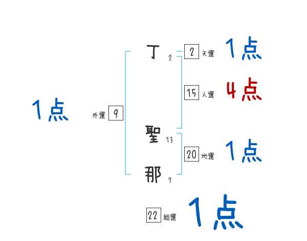 天運![]() | 丁聖那さんの天運は2画の1つ星!優しいですが積極性や意思の強さに欠ける傾向があります。家庭環境の乱れに注意しましょう。 家系が持つ宿命的な運勢を表します。祖先から受け継いだ苗字ですので自分の力が及びません。家柄を象徴します。 |