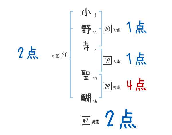 外運![]() | 小野寺聖醐さんの外運は30画の2つ星!浮き沈みの激しさに注意しましょう。 生活面を象徴する運勢です。外部から受ける影響力を表し、結婚運、家庭運や職場、環境への順応性を表します。 |