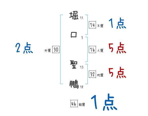 堀口聖鵬さんの画数の鑑定結果