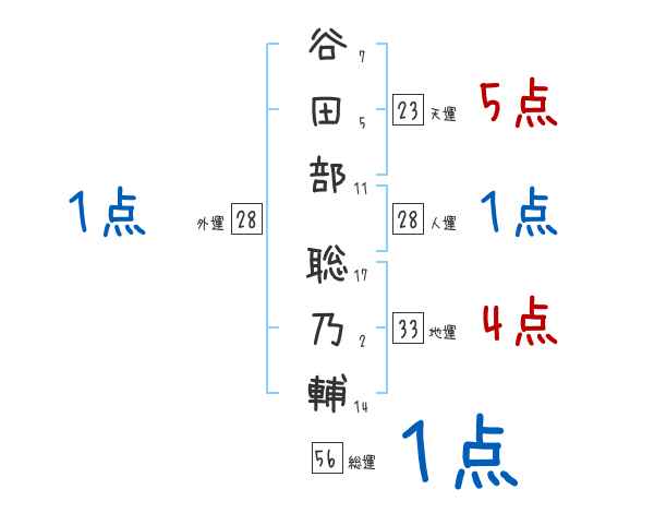 谷田部聡乃輔さんの画数の鑑定結果