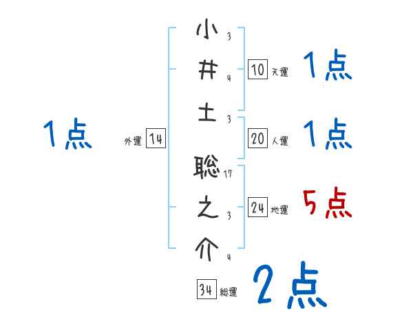 総運![]() | 小井土聡之介さんの総運は34画の2つ星!独創性に優れるが、自尊心が強く災難に注意しましょう。 あなたの人生を表す1番重要な運勢です。生涯を通じて影響する総合運となり、主に50歳以降の晩年期に影響を及ぼします。 |
