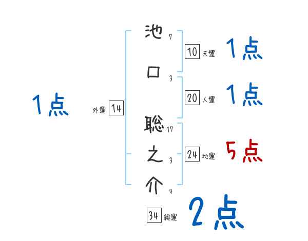 外運![]() | 池口聡之介さんの外運は14画の1つ星!人に対して優しいがストレスを溜め込みがち。人間関係のトラブルを避けるよう気をつけましょう。 生活面を象徴する運勢です。外部から受ける影響力を表し、結婚運、家庭運や職場、環境への順応性を表します。 |