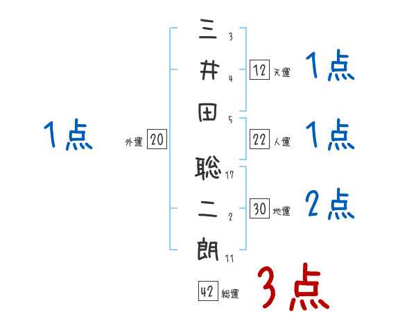三井田聡二朗さんの画数の鑑定結果