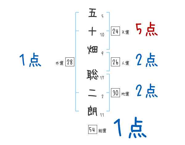 五十畑聡二朗さんの画数の鑑定結果