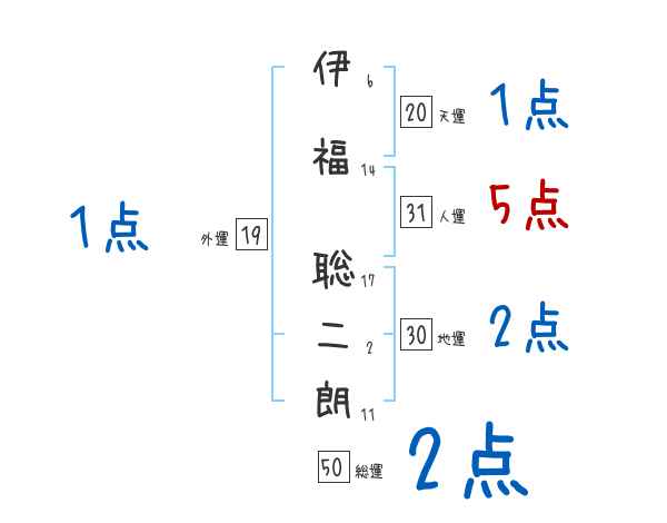 総運![]() | 伊福聡二朗さんの総運は50画の2つ星!浮き沈みが激しく不安定。しりすぼみに衰退しやすいので注意しましょう。 あなたの人生を表す1番重要な運勢です。生涯を通じて影響する総合運となり、主に50歳以降の晩年期に影響を及ぼします。 |