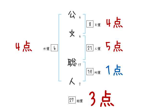 公文聡人さんの画数の鑑定結果