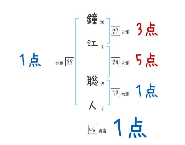鐘江聡人さんの画数の鑑定結果