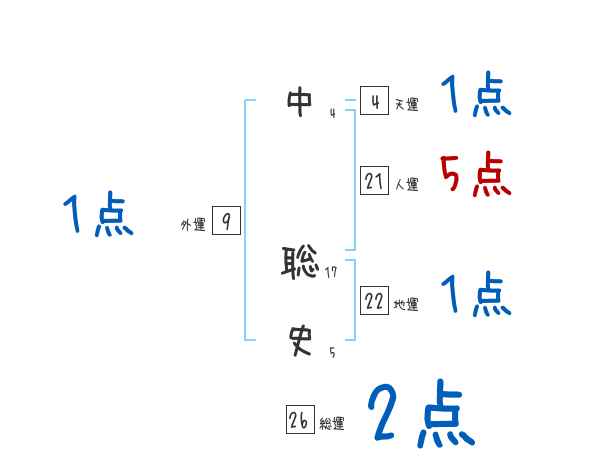 地運![]() | 中聡史さんの地運は22画の1つ星!努力することが苦手ないっぽう手先が器用。芸術性にも優れる。 個性を表す基礎的な運勢です。性格形成や対人関係、行動力など家庭環境に影響されます。主に誕生してから20歳くらいまでの若年期の運勢を表します。 |