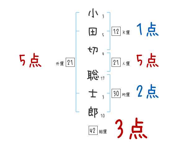 外運![]() | 小田切聡士郎さんの外運は21画の5つ星!統率力がある。独立し成功する。名誉を手に入れる。 生活面を象徴する運勢です。外部から受ける影響力を表し、結婚運、家庭運や職場、環境への順応性を表します。 |