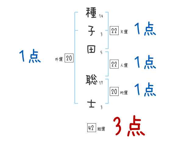 総運![]() | 種子田聡士さんの総運は42画の3つ星!病気に注意。多芸であるが消極的でおとなしい。 あなたの人生を表す1番重要な運勢です。生涯を通じて影響する総合運となり、主に50歳以降の晩年期に影響を及ぼします。 |