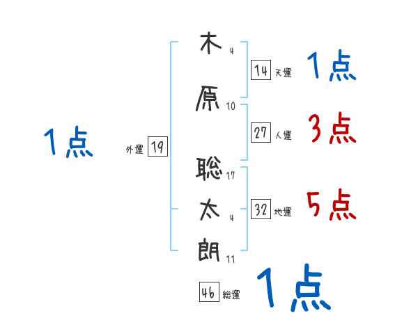 外運![]() | 木原聡太朗さんの外運は19画の1つ星!優れた才能を持ちますが、協調性が足りないことも。周りの人と協力する事を意識しましょう。 生活面を象徴する運勢です。外部から受ける影響力を表し、結婚運、家庭運や職場、環境への順応性を表します。 |