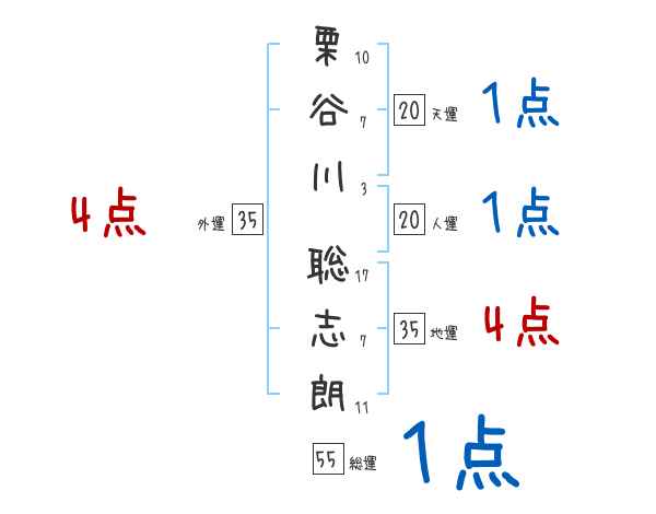 栗谷川聡志朗さんの画数の鑑定結果