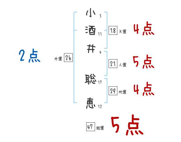 小酒井聡恵さんの画数の鑑定結果