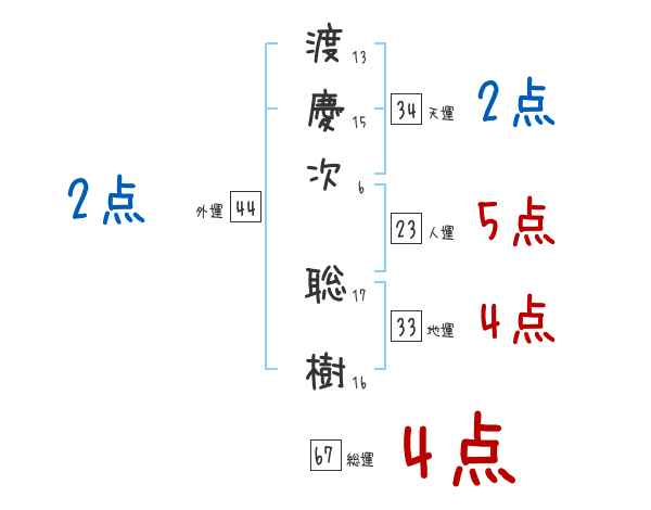 渡慶次聡樹さんの画数の鑑定結果