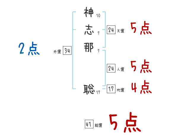 人運![]() | 神志那聡さんの人運は24画の5つ星!家庭運が良く順調な人生。金運にも恵まれる。 性格や才能などを表す2番目に重要な運勢です。人間関係や協調性、社会的な成功に影響します。主に20歳から50歳ぐらいまでの中年期の運勢を表します。 |