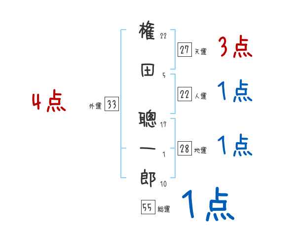 権田聰一郎さんの画数の鑑定結果
