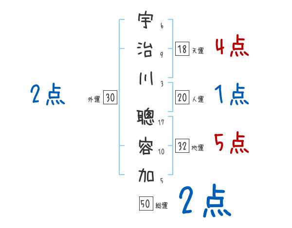 宇治川聰容加さんの画数の鑑定結果