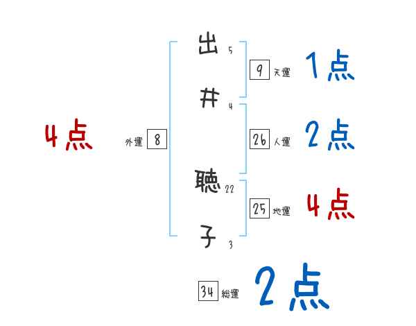 総運![]() | 出井聴子さんの総運は34画の2つ星!独創性に優れるが、自尊心が強く災難に注意しましょう。 あなたの人生を表す1番重要な運勢です。生涯を通じて影響する総合運となり、主に50歳以降の晩年期に影響を及ぼします。 |