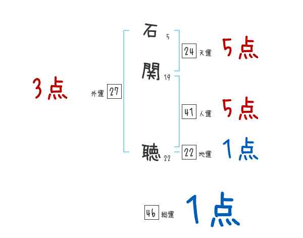 石関聴さんの画数の鑑定結果