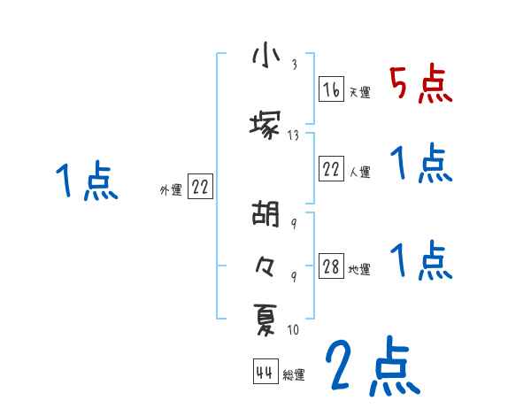 小塚胡々夏さんの画数の鑑定結果