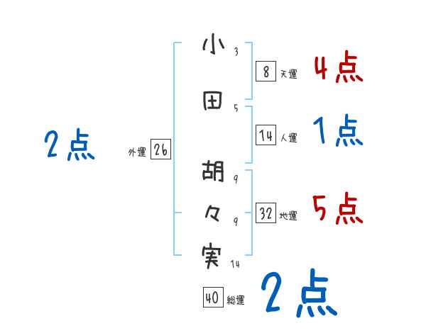 小田胡々実さんの画数の鑑定結果